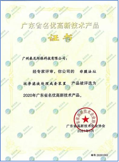 桑尼環(huán)保已申請和通過發(fā)明專利20余項,實用新型專利10余項,高新技術產(chǎn)品10余項,每年堅持自主研發(fā)新的專利技術和產(chǎn)品,不斷創(chuàng)新?!胺悄しɡ鴿B濾液處理成套裝置”評為廣東省名優(yōu)高新技術產(chǎn)品。